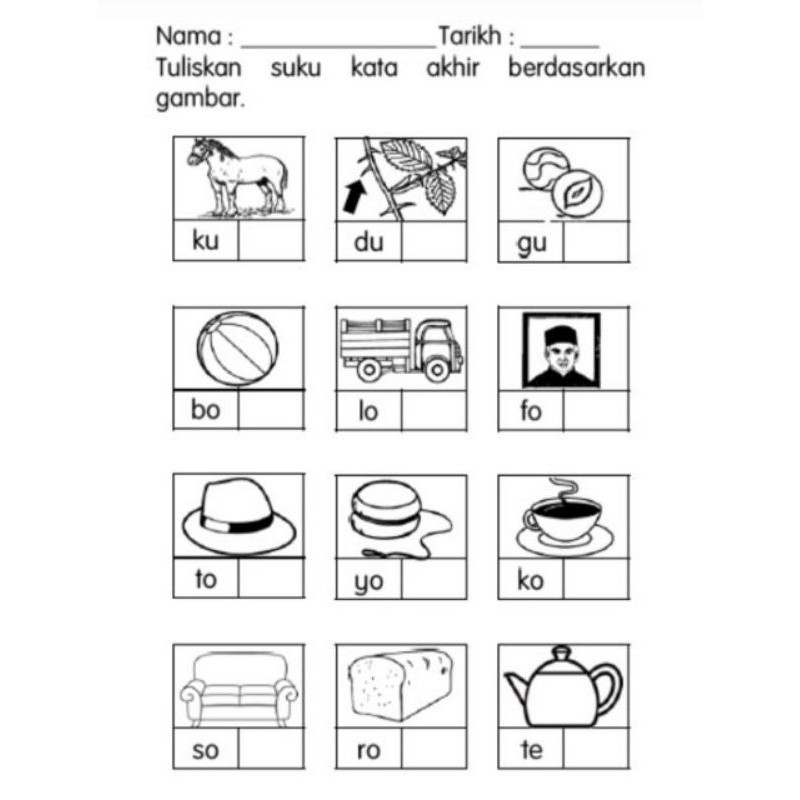 Perkataan suku kata terbuka merupakan perkataan yang berakhir dengan suku kata terbuka iaitu huruf vokal. Jom membaca suku kata (kvkv) membaca suku kata kv kv. Latihan suku kata kvkv mp3 & mp4. Marilah kita belajar membaca perkataan di bawah! Lihat ide lainnya tentang suku kata, belajar ejaan, latihan. Soalan peperiksaan prasekolah akhir 2011. Isikan tempat kosong di bawah dengan menggunakan suku kata yang betul. Share to twitter share to facebook share to pinterest. Suku kata (latihan 1) tablet series•a5 size•20 laminated pages•comb bind together neatly •write & wipe to be use repeatedly•contents consists of:1) suku suku kata (latihan 1) tablet series •a5 size •20 laminated pages •comb bind together neatly •write & wipe to be use repeatedly. Nukilan cikgu amirol semasa 3:03 pg. Jawapan latihan mate minggu lepas. Worksheets are kiraan jari dalam membantu murid pemulihan tahun 2 mengeja, kaedah syakir belajar. Latihan membaca untuk prasekolah, tahun 1 dan kelas pemulihan khas.