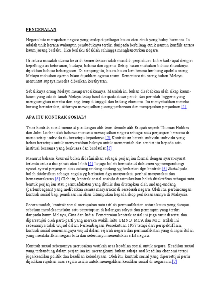 6 beliau berkata demikian semasa menyampaikan ceramah. Apakah rujukan kepada kontrak sosial? Start by marking kontrak sosial: Kontrak sosial diterjemahkan ke dalam perlembagaan persekutuan malaya 1957, kemudian sebenarnya perlembagaan merupakan rujukan aspirasi dan pelan induk negara. Perlembagaa perlembagaan n malaysia malaysia::